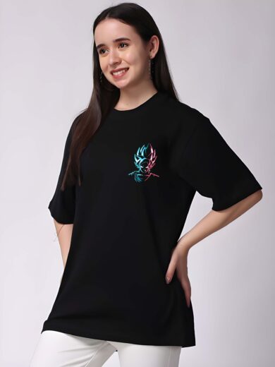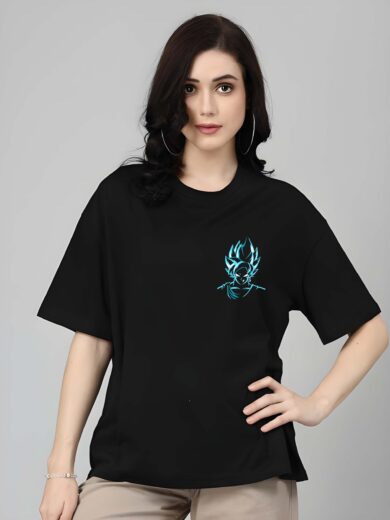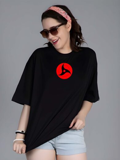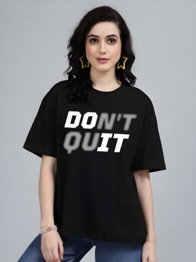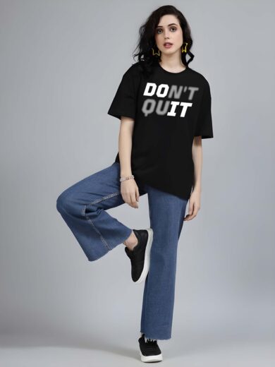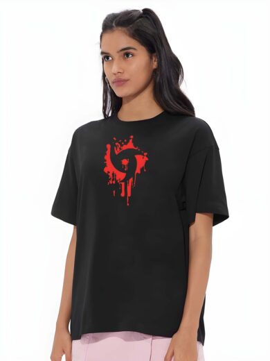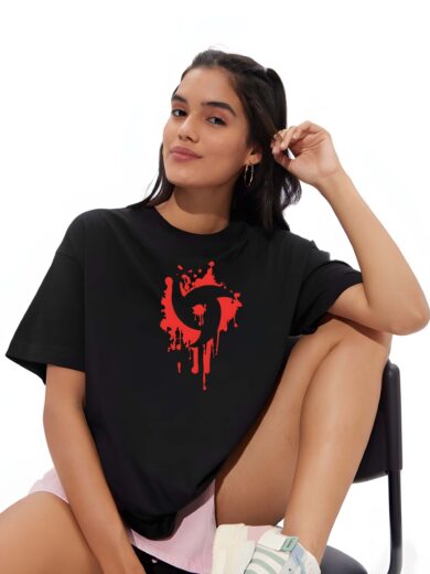 Trendsattire Women Stylish Round Neck, Cotton Over Size Printed Black T-Shirt