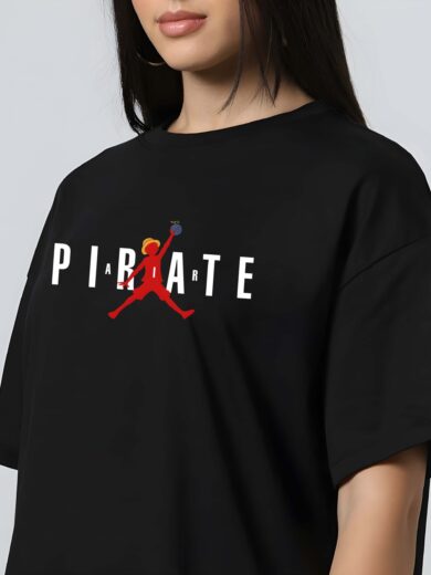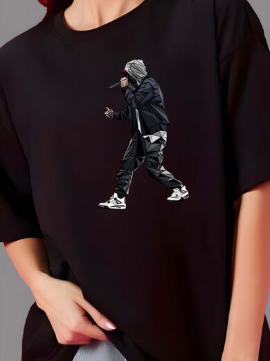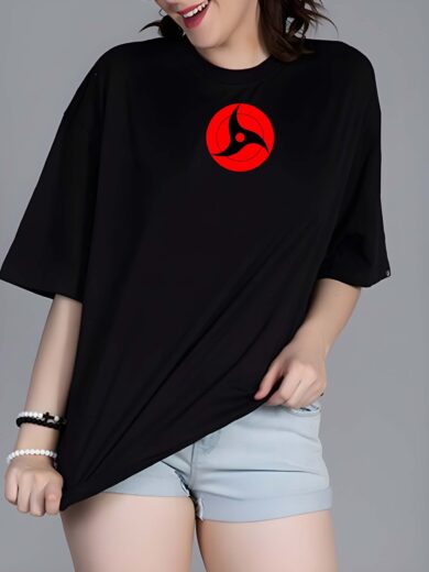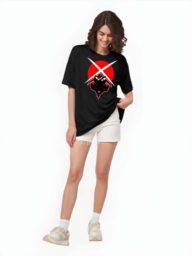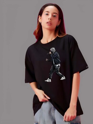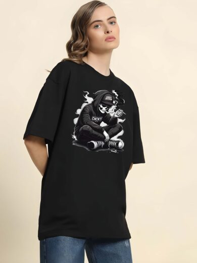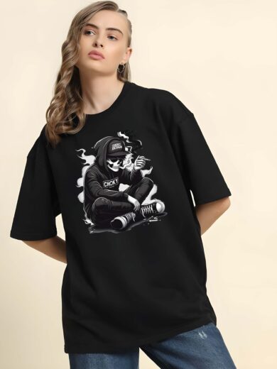 Trendsattire Women Stylish Round Neck, Pure Cotton Over Size Printed Black T-Shirt