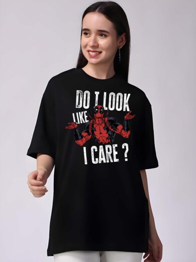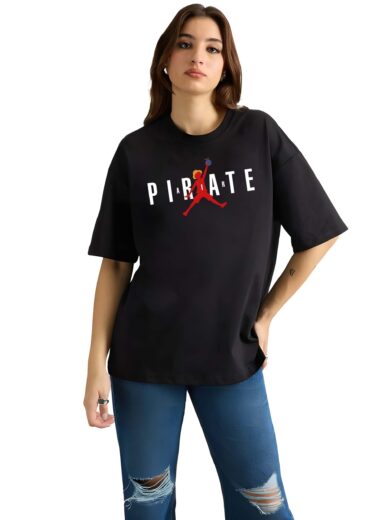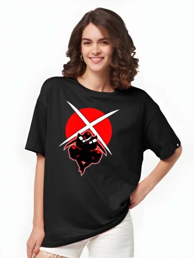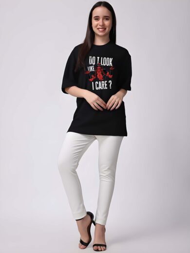 TrendsAttire Women New Arrival Round Neck, Pure Cotton Over Size Printed Black T-Shirt